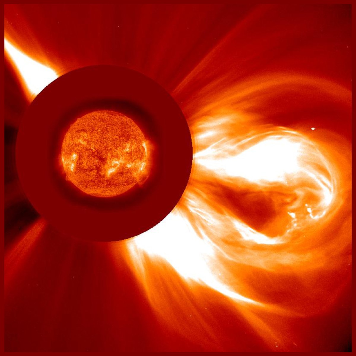 SOHO_special4 Published 2013/10/17 at 1489 × 1488 in Home ← Previous Next → A strong solar storm propagates into space. Image by the satellite SOHO. Share this: Print (Opens in new window) Print Email a link to a friend (Opens in new window) Email Share on X (Opens in new window) X Share on Facebook (Opens in new window) Facebook Share on Tumblr (Opens in new window) Tumblr Share on Pinterest (Opens in new window) Pinterest